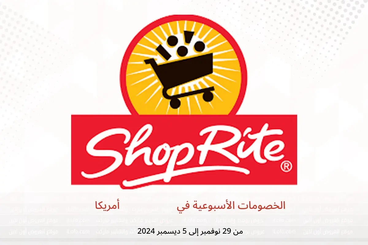 صور وأسعار الخصومات الأسبوعية في شوب رايت أمريكا المعروضة هنا لأغراض توضيحية فقط ومتاحة من الجمعة, 29 نوفمبر 2024 حتي الخميس, 5 ديسمبر 2024 ،من i L O F O . C O M.