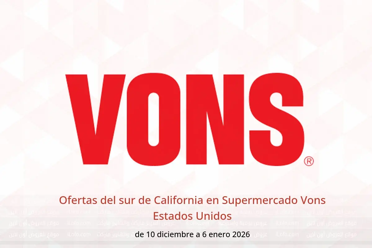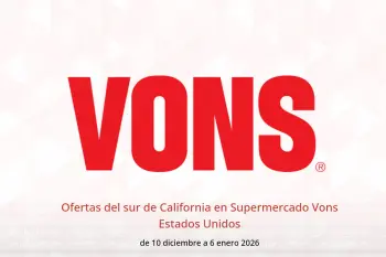 Supermercado Vons Estados Unidos anuncia nuevos descuentos titulados « Ofertas del sur de California » disponibles hasta el día 6 enero 2026, nuevas ofertas y precios sólo en Estados Unidos.