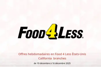 Food 4 Less États-Unis dans les branches California annonce de nouvelles réductions intitulées « Offres hebdomadaires » disponibles jusqu'au 16 décembre 2025, de nouvelles offres et prix uniquement en États-Unis.